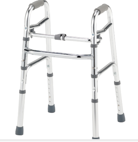 これをチョイスしたのは自宅の1階で使いたかったから。自宅1階の廊下の幅はそれほど広くないので、最初に買った歩行器より横幅長の短いものを購入した。こちらはアマゾンで14,000円ほど。ただ、最初に装具屋さんから買ったものと比べるとドッシリ感がないので、多少不安。家の中や凹凸の無いフロアなどでは良いけど、外で凸凹のある地面を歩くには不安を感じる。一長一短という感じかな。